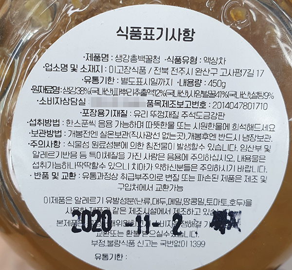 »ó ǰ ¸í : »ý°­ ÃÑ¹é ²Üû 400g